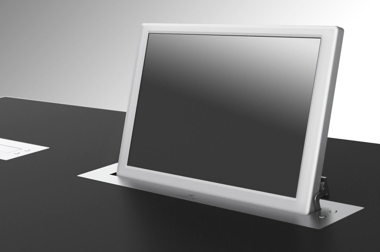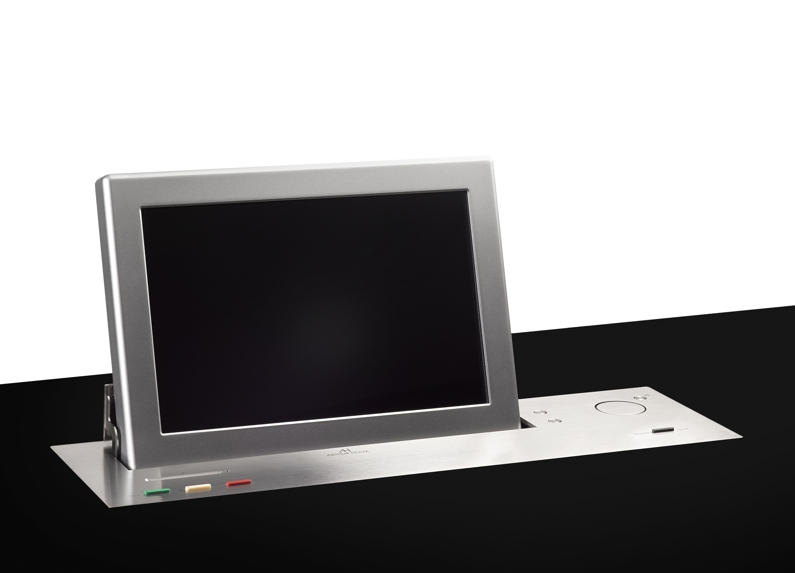 • Профессиональный широкоформатный (FULL HD) выдвижной моторизированный монитор 17,3" с наклоном в 20 градусов .