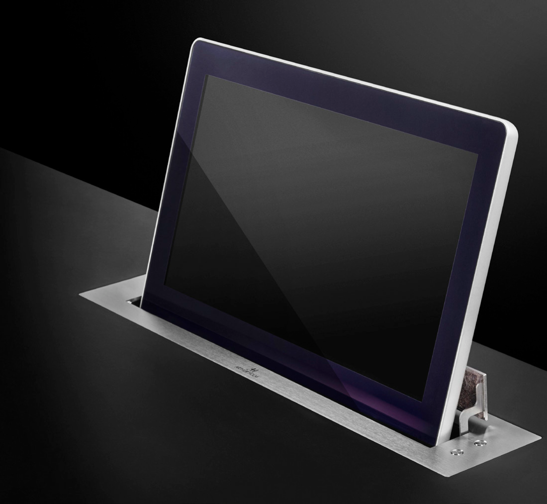 • Профессиональный электрически выдвижной 17,3" широкоформатный Full HD монитор с автоматическим наклоном на 20 градусов, интегрируется в мебель.