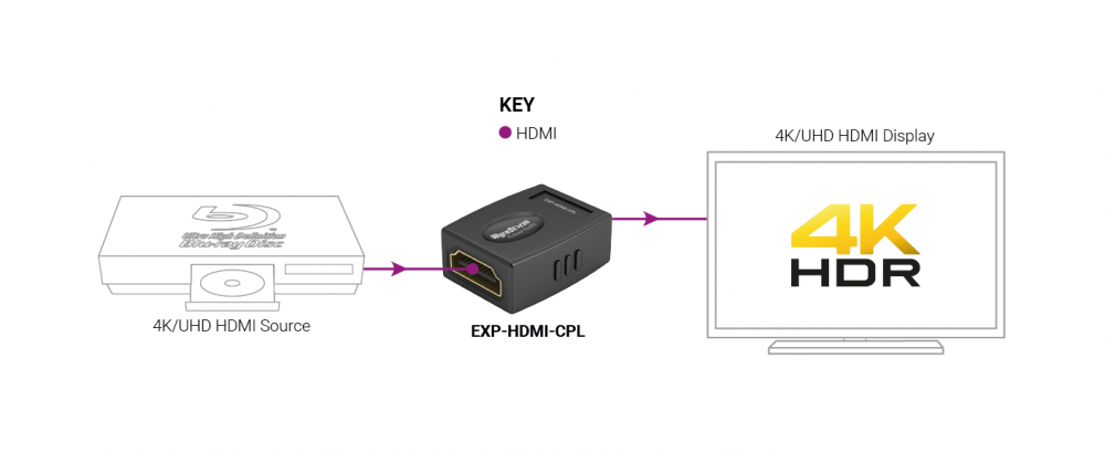 WyreStorm EXP-HDMI-CPL – адаптер идеально подходит для сценариев, когда встроенный кабель HDMI недостаточно длинный и нет возможности замены кабеля.