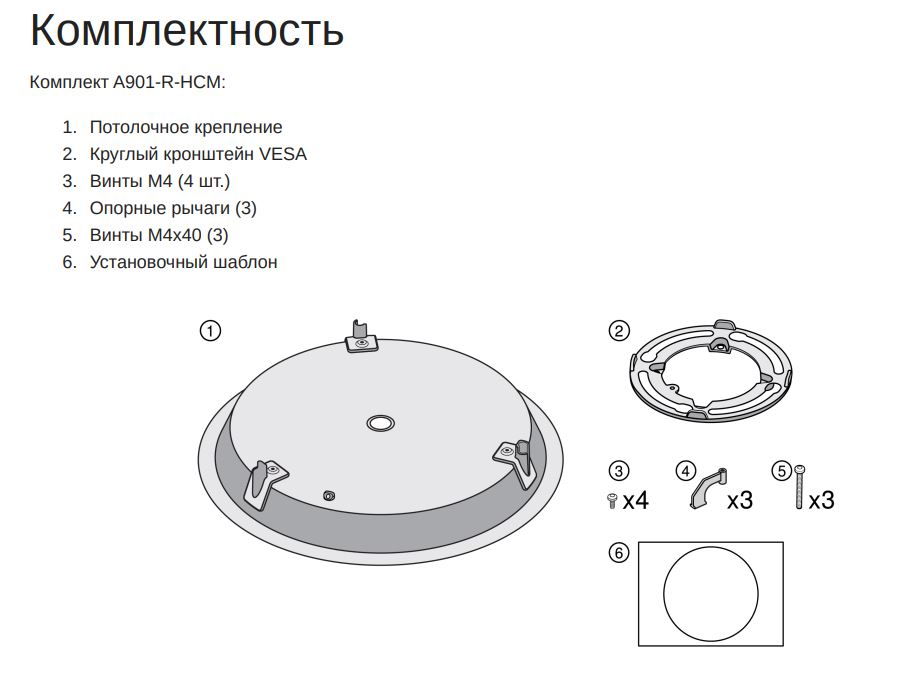 Комплект для потолочного крепления A901-R-HCM включает в себя принадлежности для установки микрофона MXA901-R на потолке из гипсокартона. После установки микрофон устанавливается почти заподлицо с окружающим потолком.