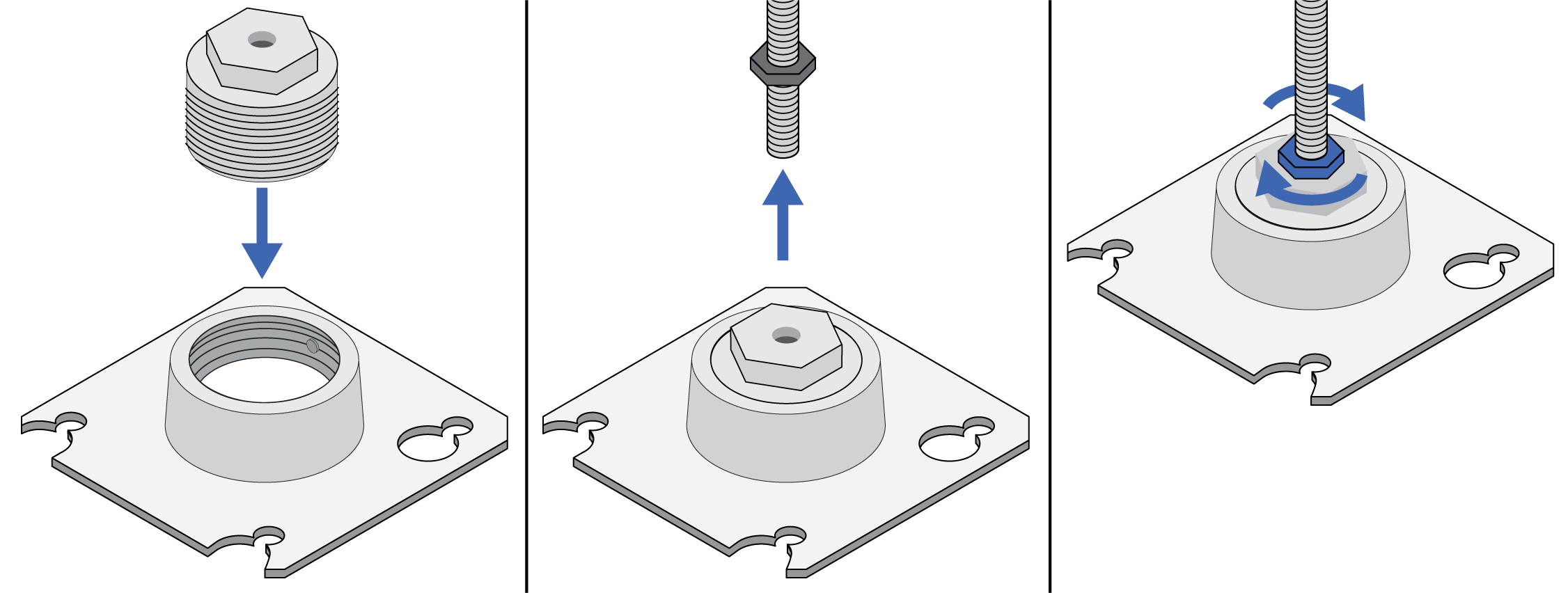 Комплект для установки на мачте A901-R-PM от Shure включает детали для установки совместимых микрофонов на штангах с резьбой NPT диаметра 1,5 дюйма или резьбовом стержне диаметром 3/8 дюйма (штанга и резьбовой стержень не прилагаются).