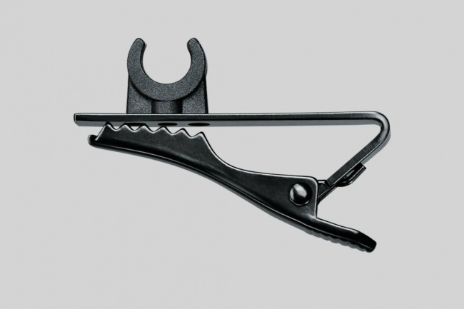Металлическая клипса для закрепления микрофона MVL на одежде.