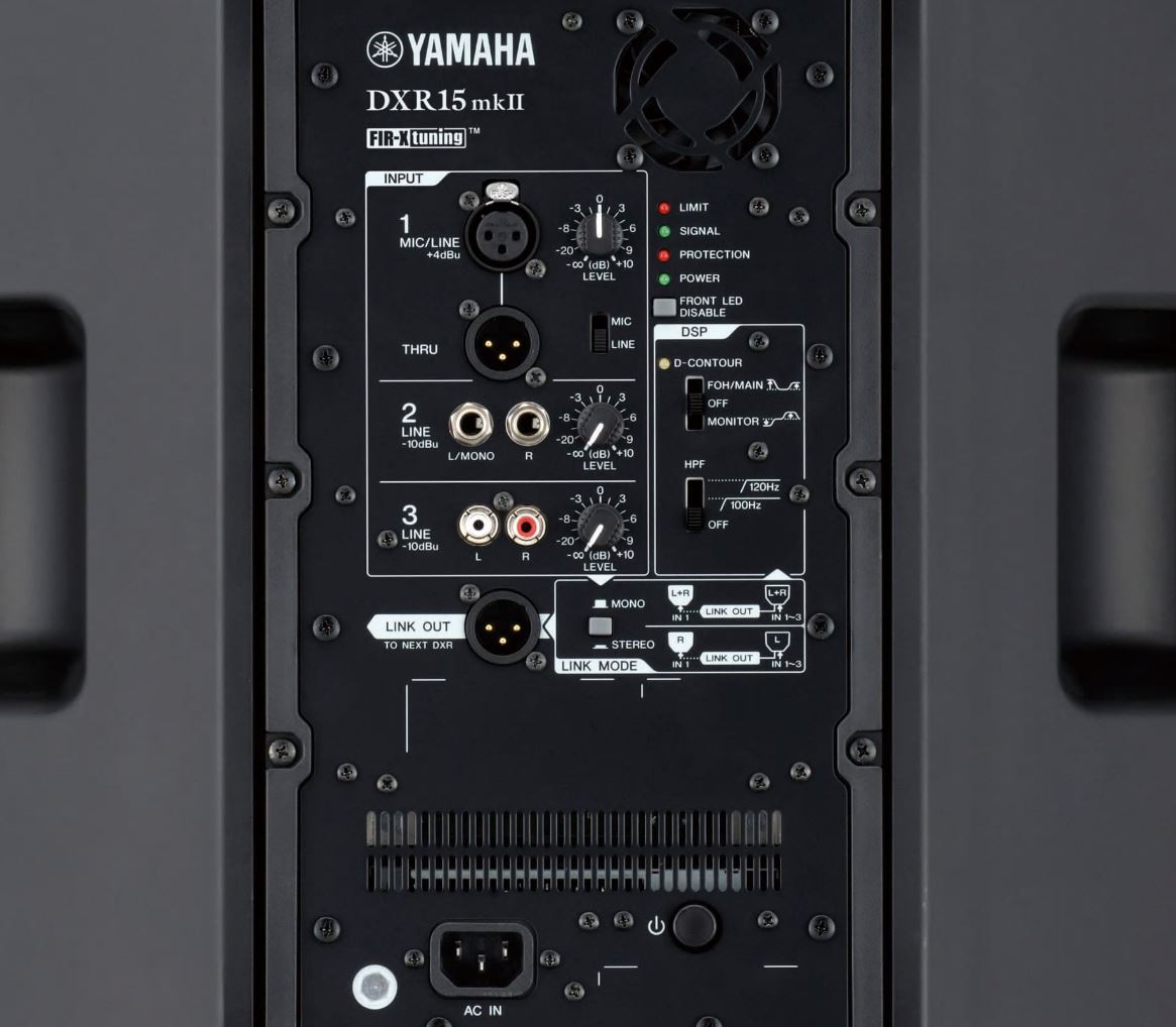В серии DXR mkII имеется гибкий микшер с возможностями подключения различных источников звука, что позволяет применять акустические системы для звукоусиления вокала и инструмента. Гибкий набор разъемов (IN/OUT) позволяет создать с помощью устройства DXR mkII полноценную звукоусилительную систему или гибко интегрировать ее с акустическими системами, состоящими из моделей серий DZR или DXS.