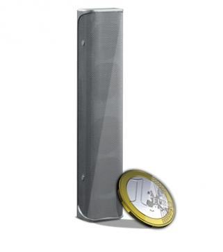 Высокая эффективность достигнута применением неодимовых магнитных систем. Эта миниатюрная акустическая система всего 10 см высотой и 1,2 см глубиной воспроизводит истинно кристально чистый звук с уровнем давления 92 дБ, что поразительно для таких незначительных размеров. Система обеспечивает отличное звучание в ситуациях с ограниченным пространством. До четырех KZ14 может быть установлено с сабвуфером KU36, расширяющего частотный диапазон до 35 Гц.