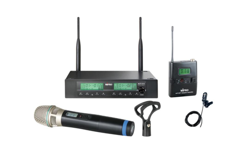 Двухканальная комбинированная UHF радиосистема с ручным конденсаторным суперкардиоидным микрофоном и поясным передатчиком с всенаправленным петличным микрофоном. Диапазон рабочих частот 518 - 542 МГц. Ширина полосы 24 МГц. В комплекте: Двухканальный полурековый приёмник ACT-312, блок питания, две полуволновые антенны, ручной передатчик ACT-32H-80 с микрофонным держателем, поясной передатчик ACT-32T с петличным микрофоном MU-55L.