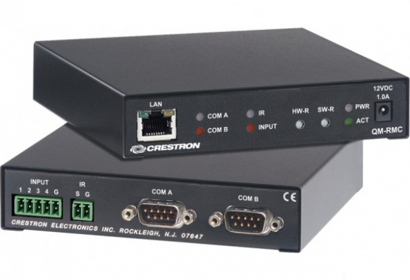 У контроллера QM-RMC имеется два двунаправленных порта RS-232 и один ИК/последовательный порт для управления широким рядом аудиовидеоустройств. Кроме того, четыре цифровых входных порта позволяют подключать датчики присутствия в помещениях, датчики мощности и т. п.