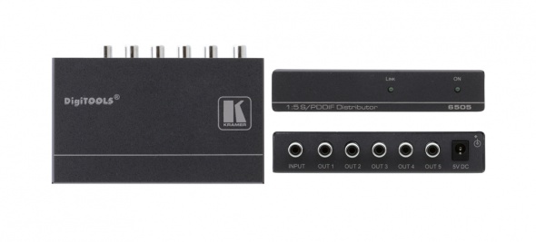 Kramer 6505 - высококачественный усилитель-распределитель для цифрового аудиосигнала S/PDIF. Прибор имеет один S/PDIF вход, сигнал с которого распределяется на пять идентичных S/PDIF выходов.
