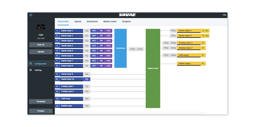 Процессор аудиоконференц-связи IntelliMix P300-IMX предназначен для быстрой и легкой организации АВ конференций, обеспечивает высококачественное звучание благодаря алгоритмам DSP, оптимизированным для конференц-систем с микрофонами Microflex Advance и Microflex Wireless. Благодаря алгоритмам подавления акустического эха, уменьшению шума и автоматической регулировке усиления для каждого из 8 каналов Dante, P300 обеспечивает эхо- и шумоподавление в конференц-зале, что облегчает общение и совместную работу. Простой в установке и настройке, P300 оснащен Dante, аналоговыми, USB и мобильными возможностями подключения, которые делают объединение систем и совместную работу с ноутбуками и мобильными устройствами быстрее и легче, чем когда-либо.