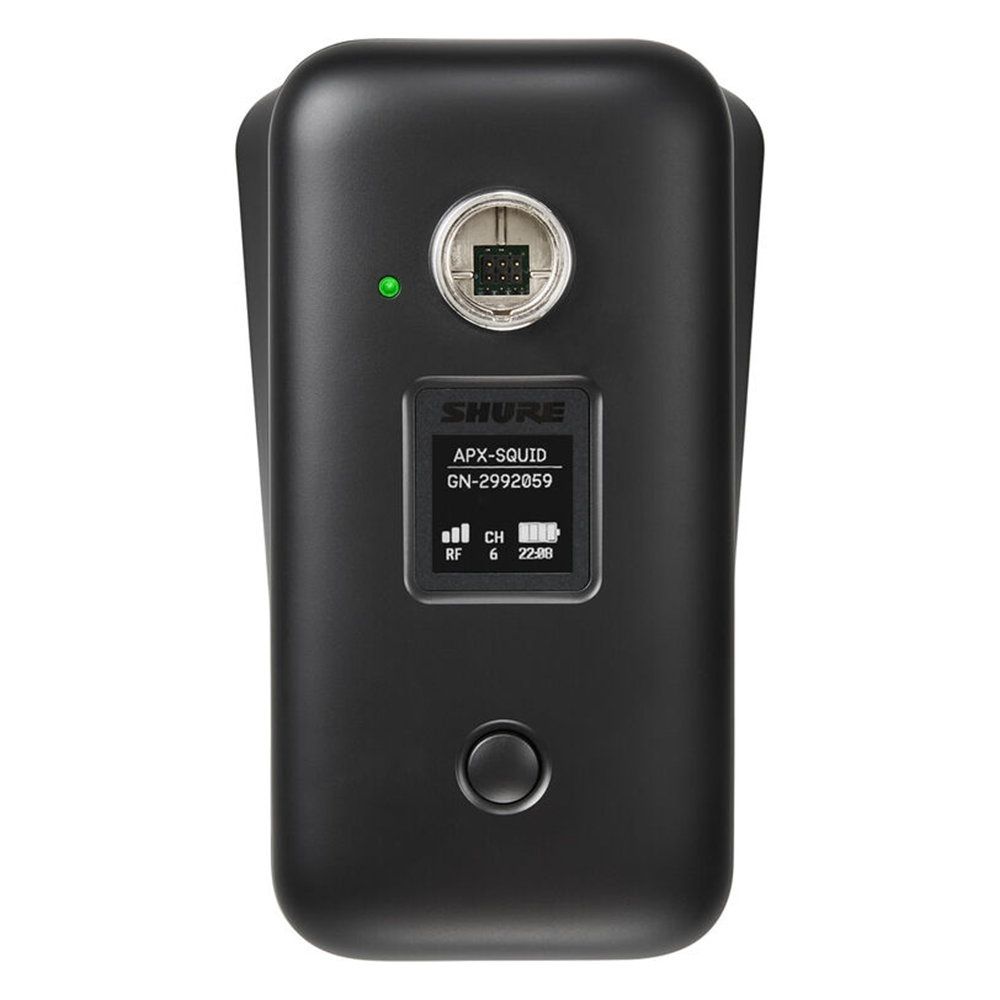 - Матричный дисплей отображает точную информацию: оставшееся время работы батареи, оставшееся время до полной зарядки, качество радиочастотного соединения, системные оповещения, например, о выходе за пределы зоны действия радиочастоты, а также редактируемые пользователем данные о компонентах, такие как имя микрофона и имя точки доступа, к которой подключен микрофон.
