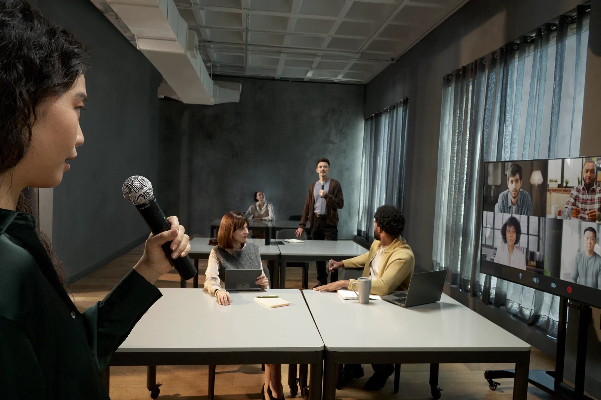 В наши дни на каждом собрании, занятии или тренинге присутствуют как местные, так и удаленные участники. Вам необходимо обеспечить безупречное звучание для людей в зале и тех, кто присоединился удаленно, будь то презентация, командная конференция или университетская лекция.