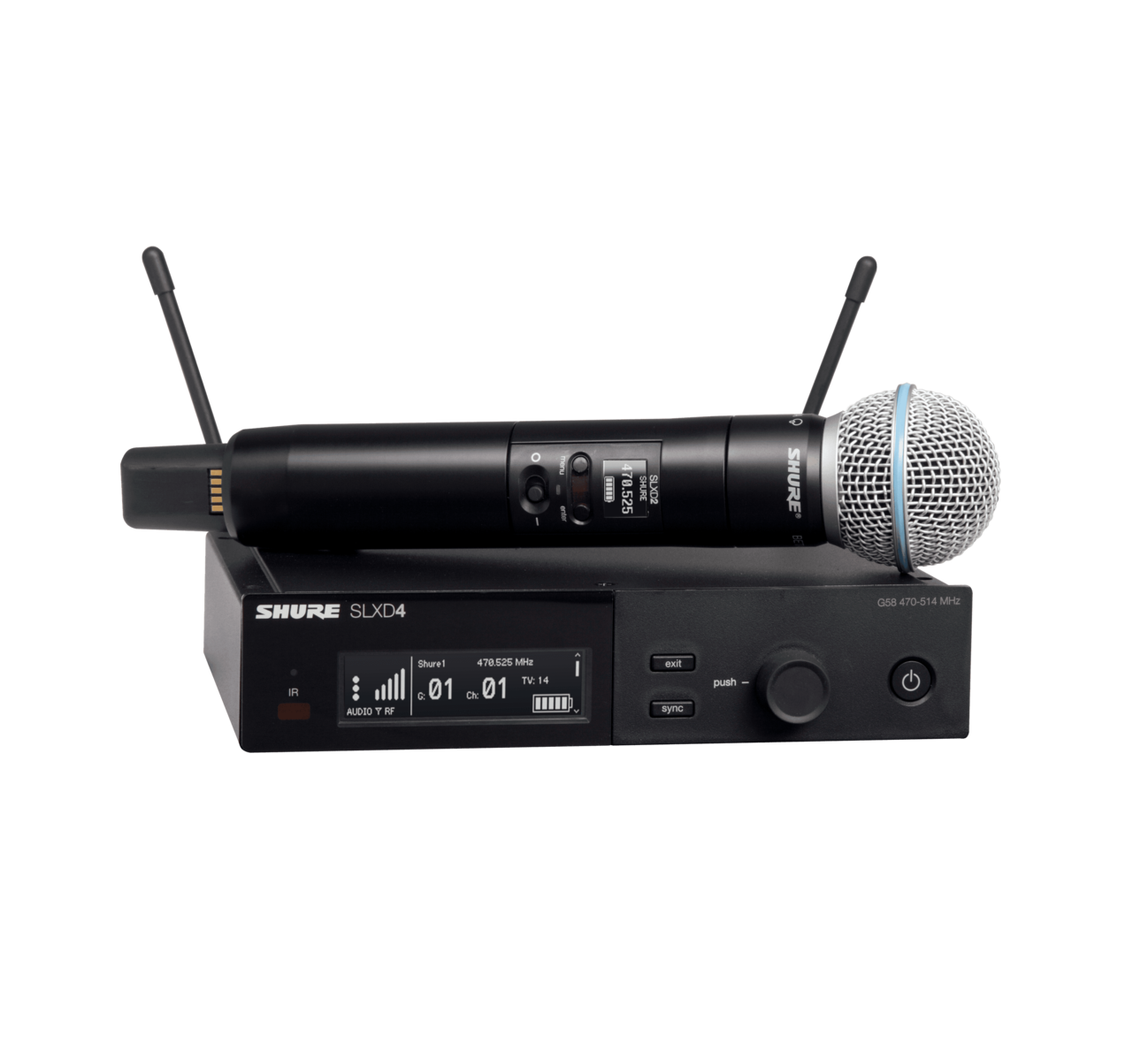 Ручной передатчик SHURE SLXD2/B58 - надёжный и простой в эксплуатации, с микрофонным капсюлем Beta® 58A, прекрасно подходящий как для проведения презентаций, так и для концертных выступлений.