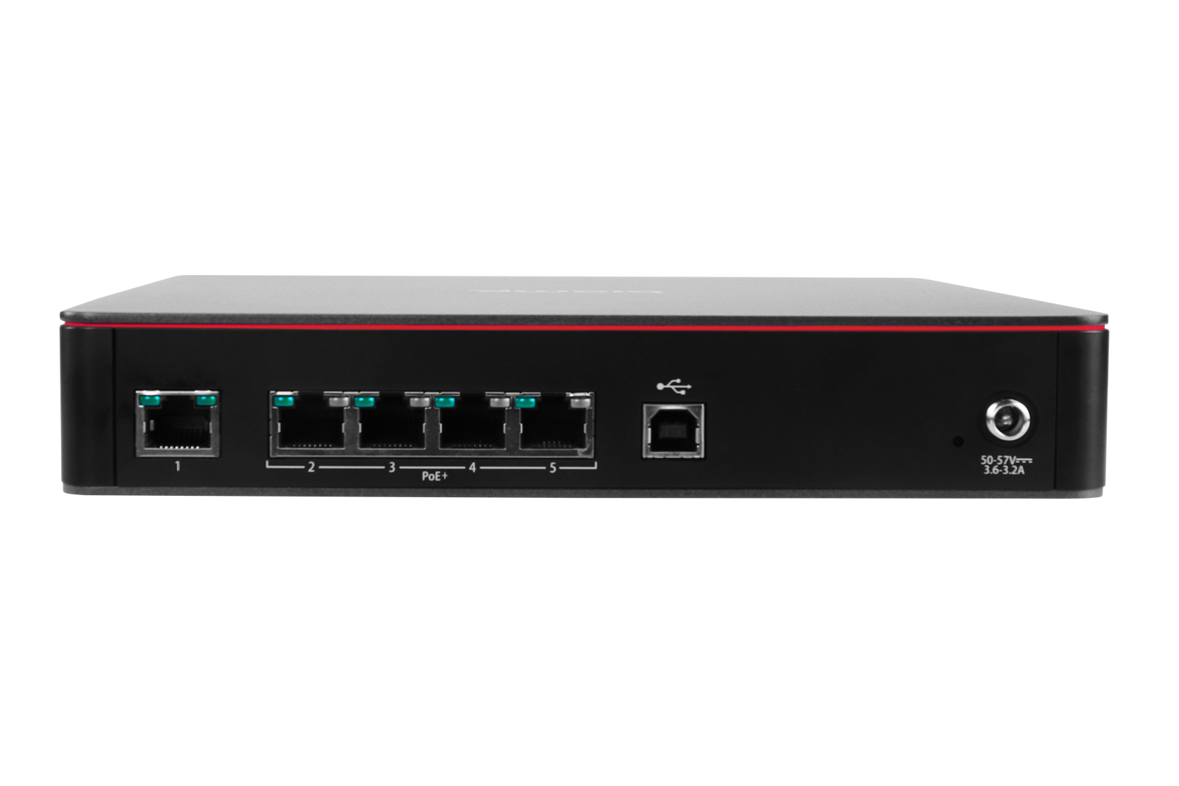 • Пять гигабитных портов Ethernet (4 порта с PoE + питанием)