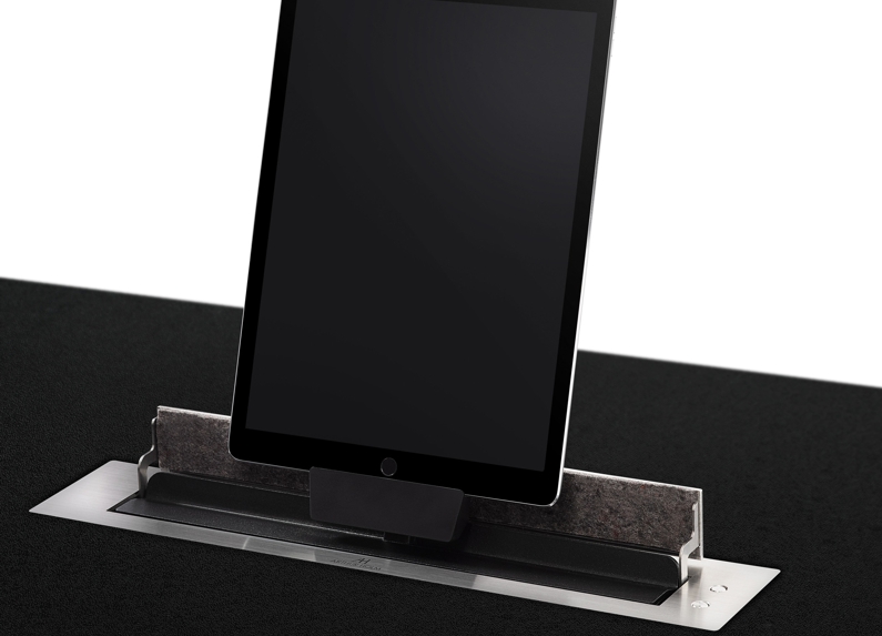 Профессиональный выдвижной держатель DynamicTabLift позволяет скрыть Ваш планшет Apple IPad в поверхности стола, когда он не используется, что делает рабочее место более функциональным и удобным.