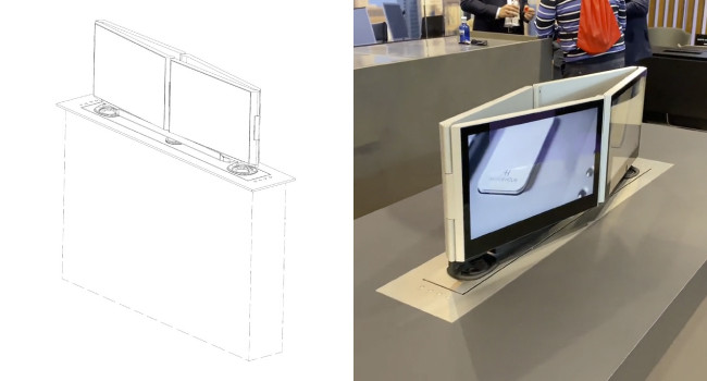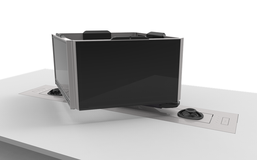 Решение Dynamic4, размещённое в центре стола, оптимизирует пространство, не мешая личному зрительному контакту во время проведения встречи. При нажатии одной кнопки, все четыре монитора поднимаются с поверхности стола. Их можно убирать, перемещать, создавая различные формы и поворачивать так, чтобы они «смотрели» на всех сидящих вокруг стола. Устройство может принимать как плоскую ромбовидную форму, так и квадратную, позволяющую расположить мониторы в соответствии с количеством и положением посетителей.
