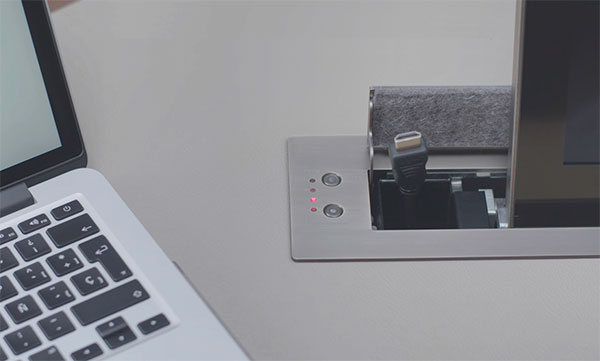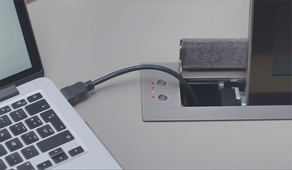 - Поставляется с выдвижным кабелем HDMI, встроенным в настольную крышку монитора.