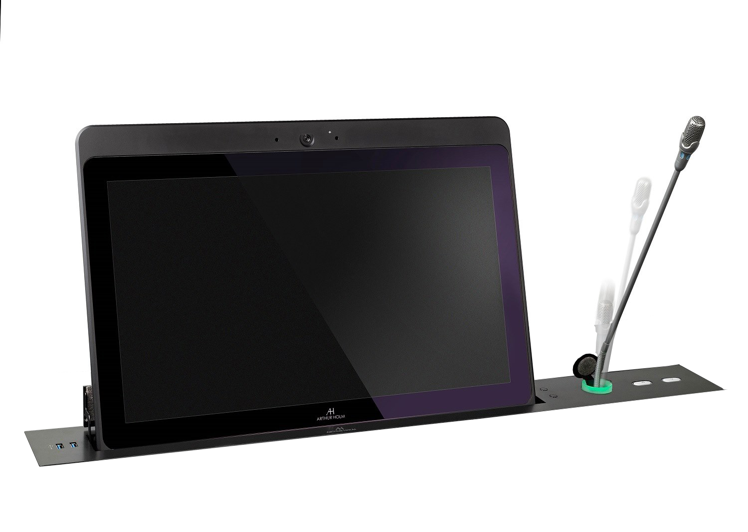 Надежные мониторы серии DynamicX2Talk производства Arthur Holm интегрированы с независимой лифтовой системой для микрофона типа "гусиная шея". Исключительно элегантный и строгий дизайн выдвижных мониторов DynamicX2Talk, где продумана каждая деталь, создан для наиболее требовательной публики для размещения в конференц-залах, кабинетах руководителей и общественных зонах.