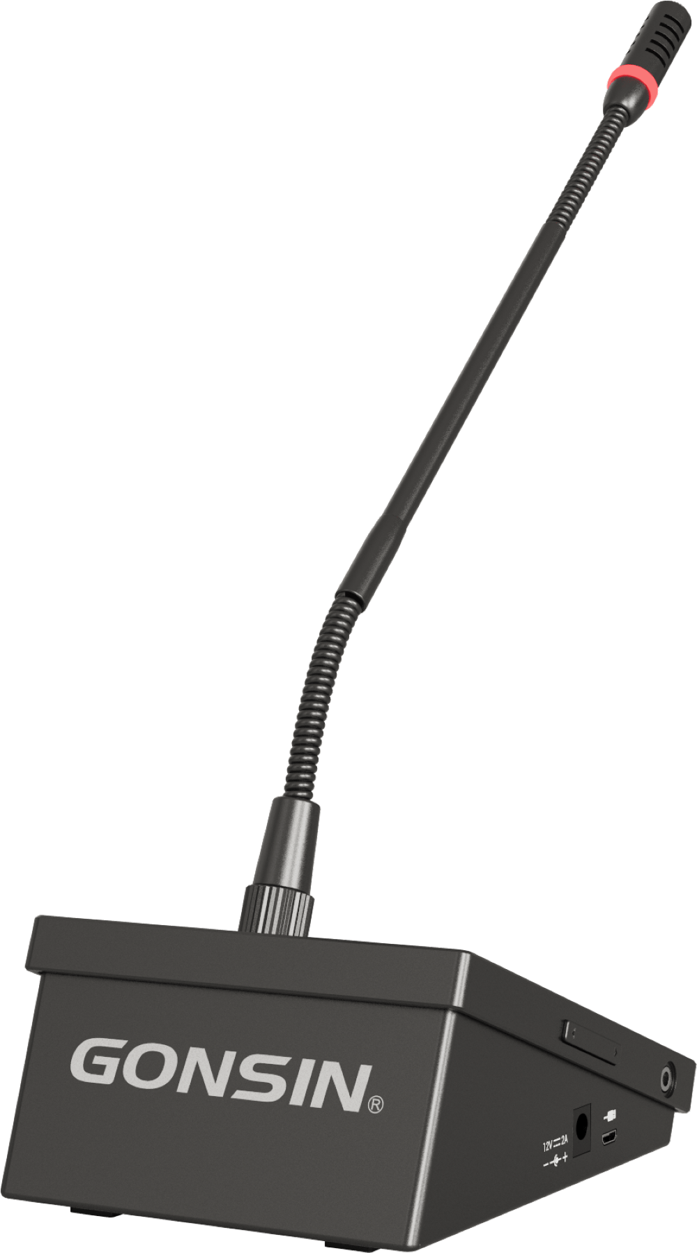 Gonsin DCS-1023C-W-G — настольный беспроводной дискуссионный пульт председателя серии DCS-1023 предназначен для участия в совещаниях, организованных на базе конференц-системы 10000N. Пульт выполнен в металлическом корпусе и идет в комплекте со съёмным кардиоидным микрофоном на гусиной шее 410 мм со светодиодным индикатором и ветрозащитой.