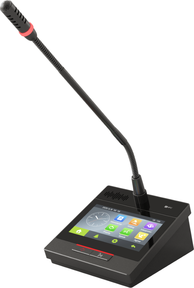 Беспроводной пульт председателя с функцией голосования, синхронного перевода и сенсорным 4.3" экраном, со съёмным микрофоном на гусиной шее