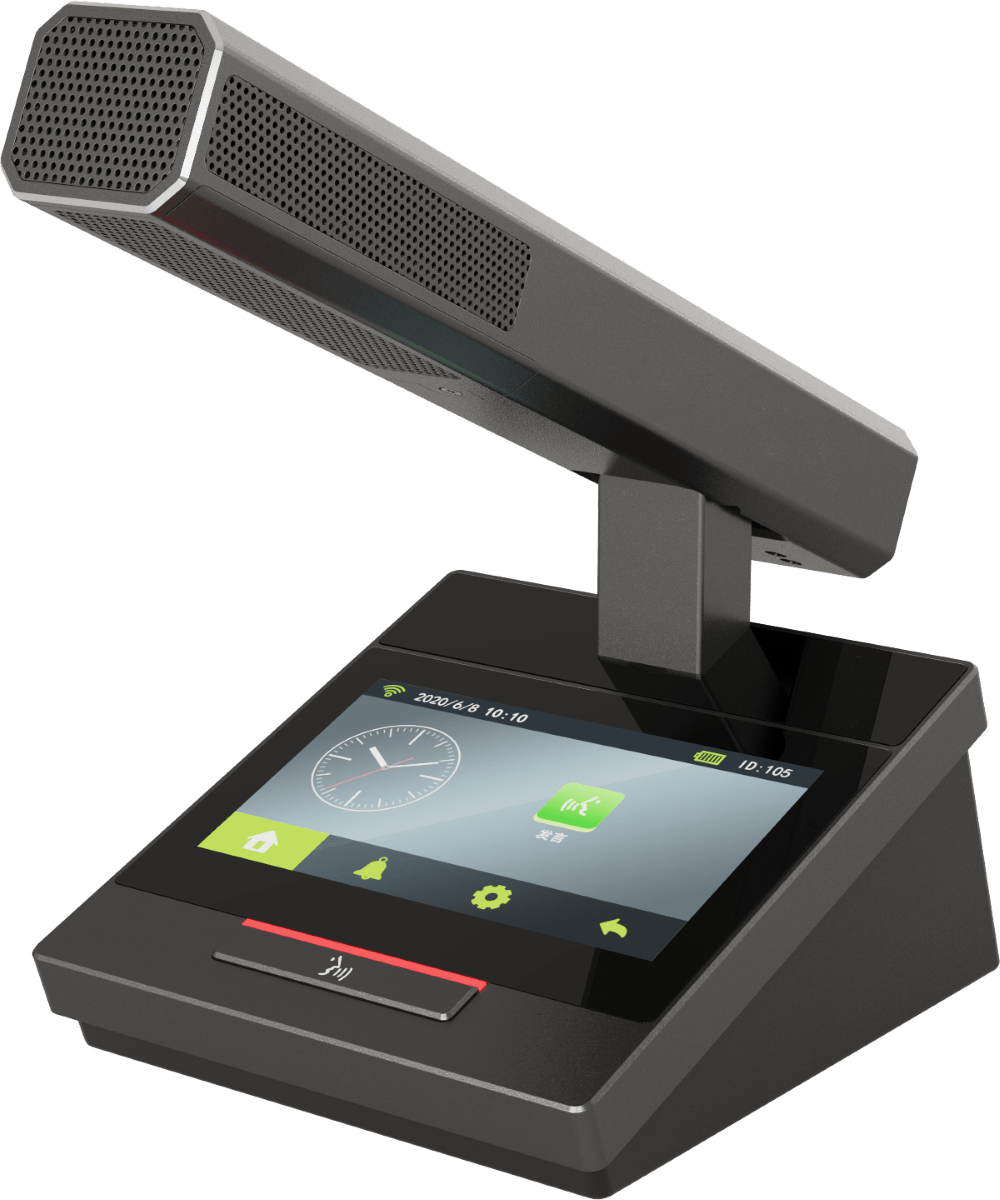 Беспроводной дискуссионный пульт делегата с сенсорным 4.3" экраном и несъёмным микрофоном в прямоугольном корпусе