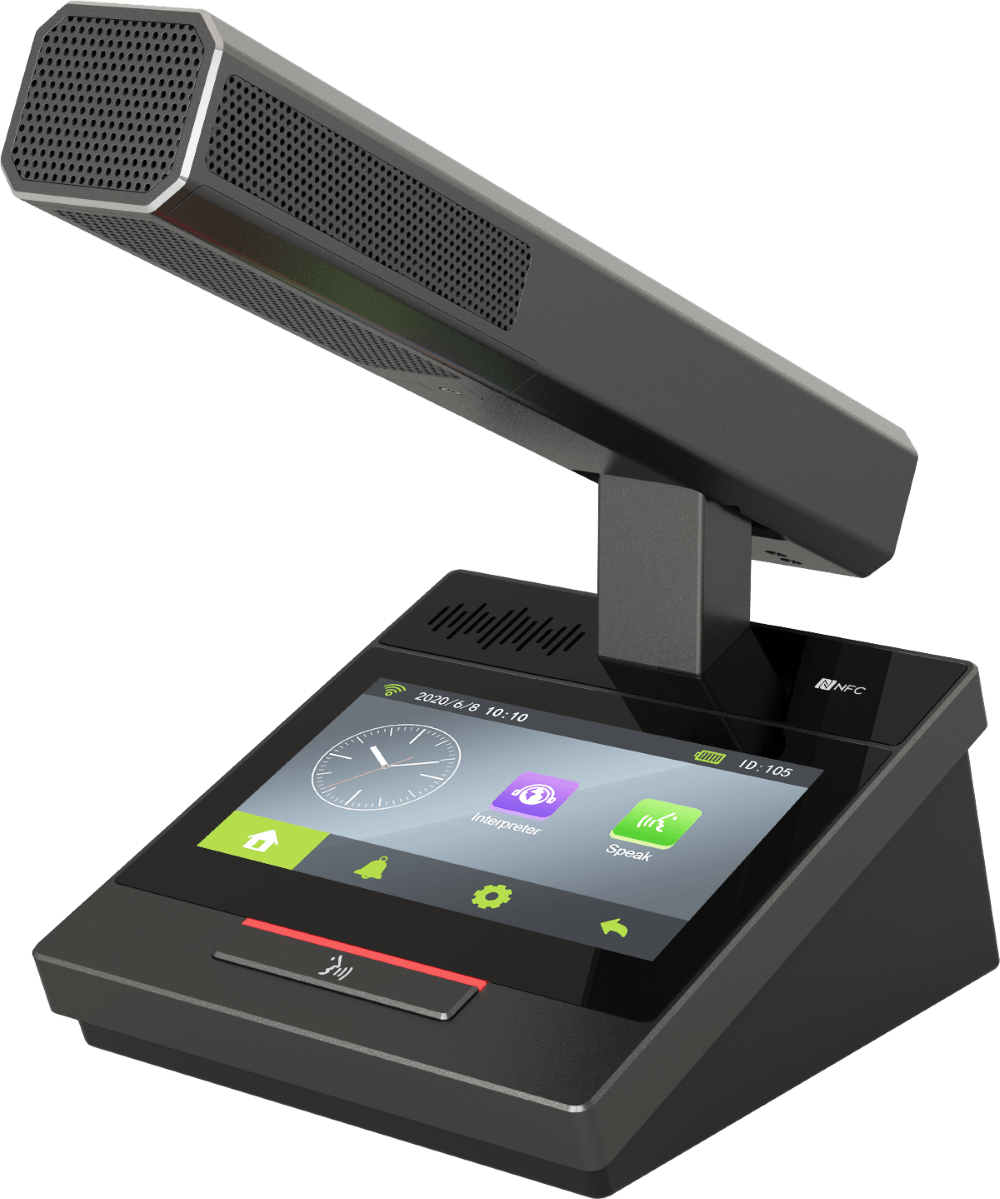 Беспроводной пульт делегата с функцией голосования, синхронного перевода и сенсорным 4.3" экраном, с несъёмным микрофоном в прямоугольном корпусе