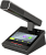 - Микрофон на гусиной шее: к пульту председателя подключается съёмный микрофон на гибкой подставке типа «гусиная шея», который может быть отсоединен, когда пульт не используется, что делает его удобным для обслуживания оборудования. Электретный микрофон с кардиоидной характеристикой направленности имеет светодиодное индикаторное кольцо и подставку с двумя гибкими участками. В стандартную комплектацию включен микрофон длиной 410 мм, дополнительно можно заказать микрофон с гусиной шеей длиной 310 мм или 510 мм.