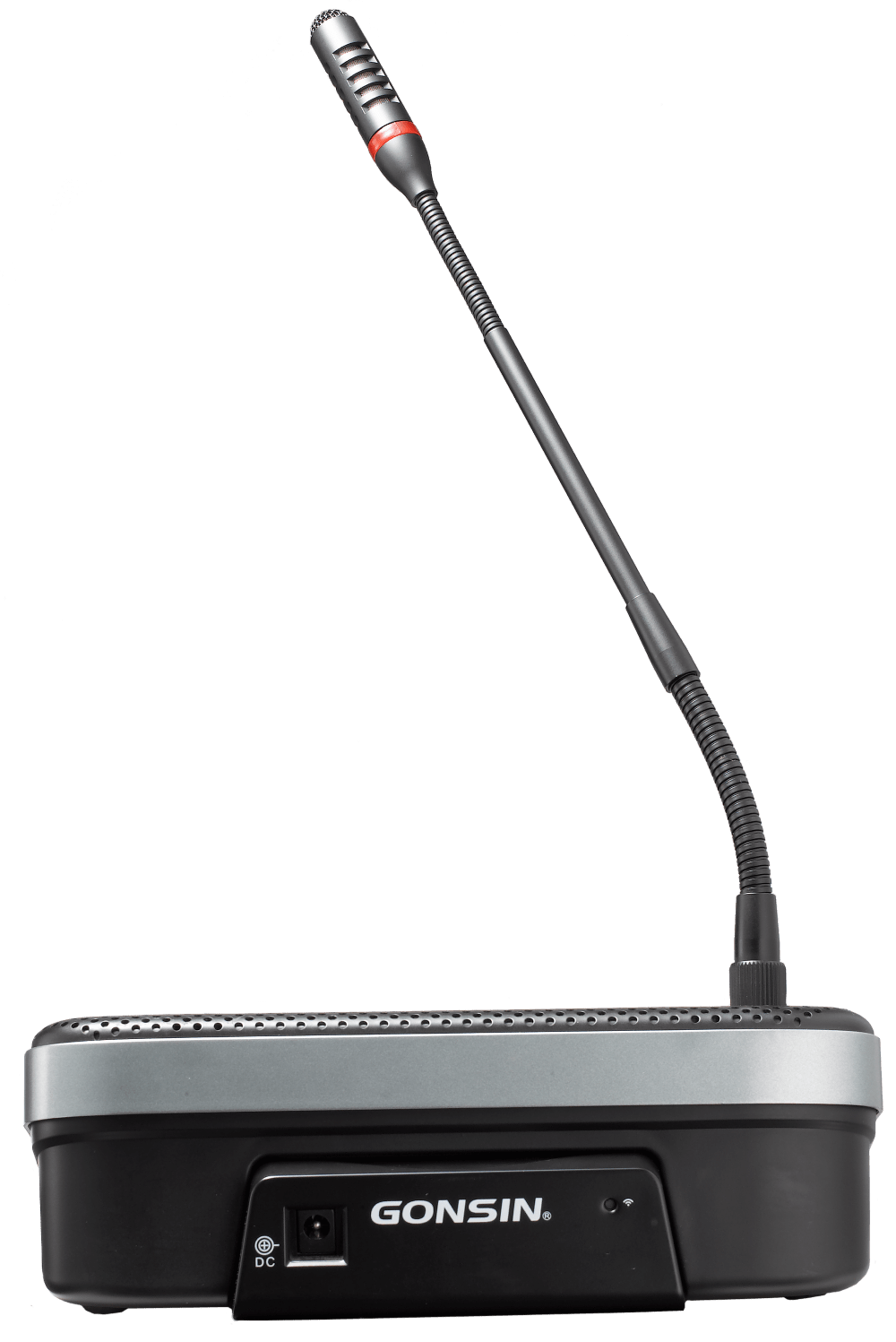 Gonsin DCS-1022DI-W — настольный беспроводной пульт делегата с функцией синхронного перевода серии DCS-1022 предназначен для участия в совещаниях и многоязыковых конференциях, организованных на базе конференц-системы 10000N. Пульт выполнен в металлическом корпусе и идет в комплекте со съёмным кардиоидным микрофоном на гусиной шее 310 мм со светодиодным индикатором и ветрозащитой.