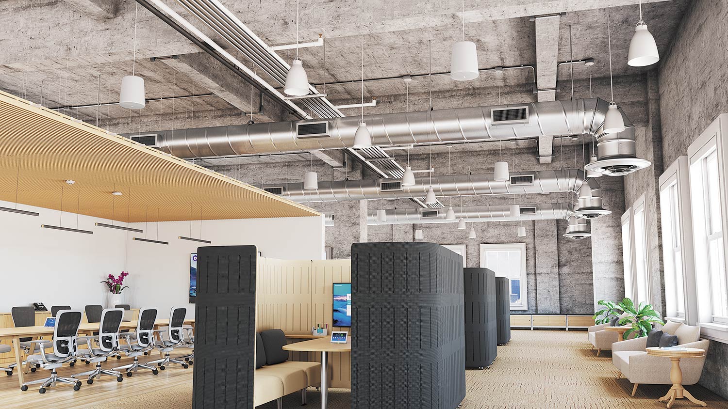 Офис с высокими потолками