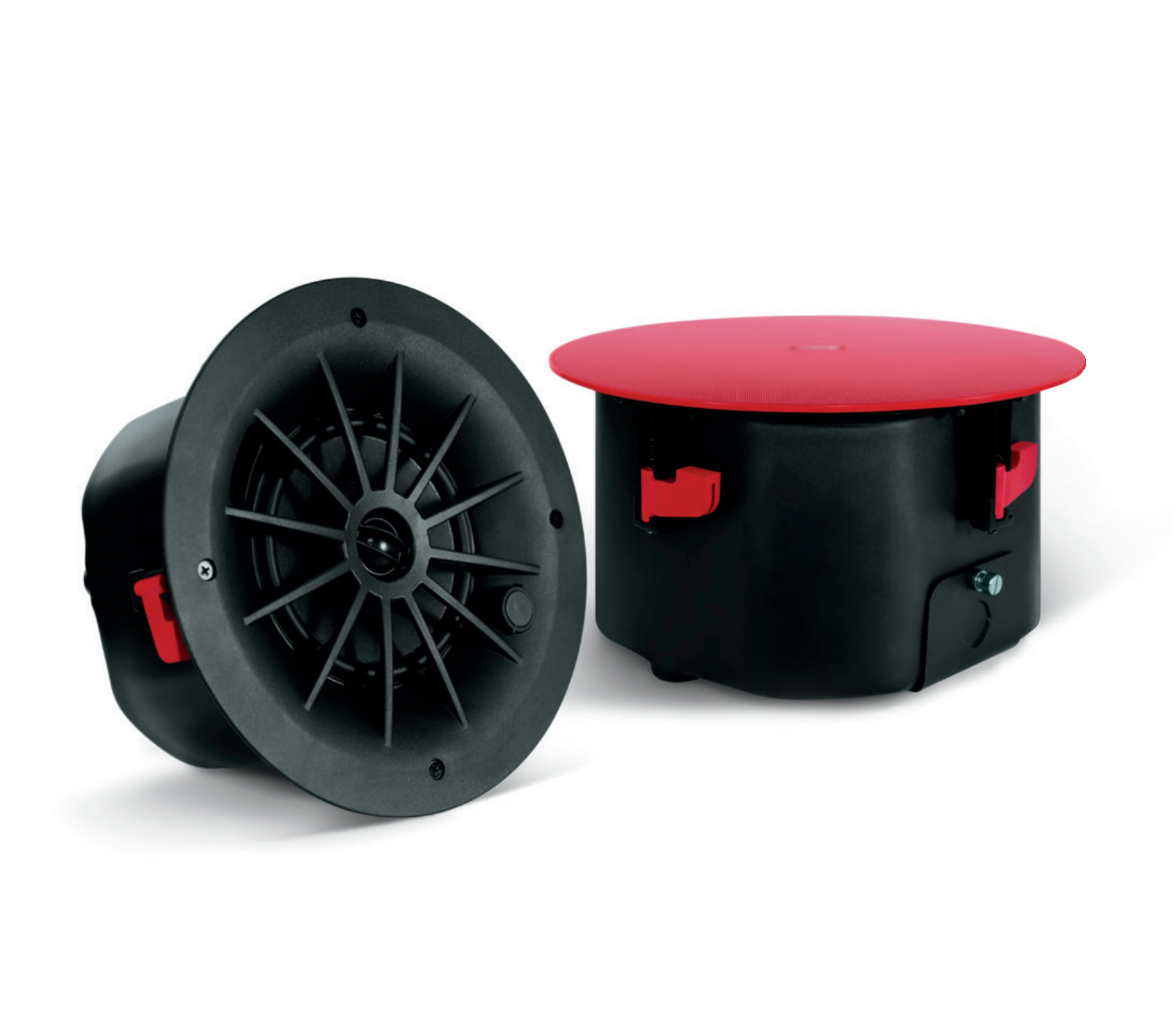 Потолочный коаксиальный двухполосный громкоговоритель для конференций 6.5", глубина установки 155 мм, номинальная мощность 60 Вт (240 Вт пик) на 8 Ом, максимальный SPL 106 дБ, 130 угол раскрытия, красная сетка.