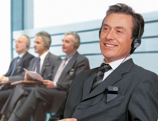 Для каждого мероприятия, в котором принимают участие иностранные представители, требуется синхронный перевод. Оборудование для синхронного перевода позволять выполнять перевод с отставанием всего в 2 секунды. Переводчики находятся в звуконепроницаемых кабинах, в то время как участники слушают речь при помощи индивидуальных приемников с наушниками. Компания «Хай-Тек Медиа» предлагает системы синхронного перевода Integrus производства Bosch, выгодно отличающиеся прекрасным качеством звука.