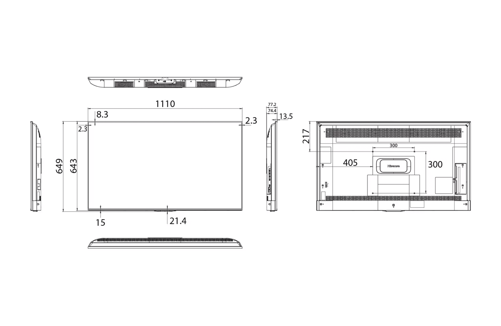 | Ширина рамки | Верхняя: 8,3 мм; левая/правая: 2,2 мм; глубина: 15,7 мм |