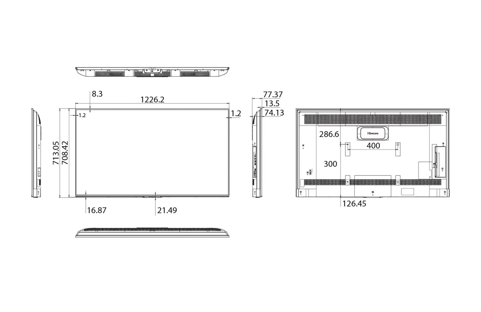Информационный дисплей 55", 350 нит, 4K, D-LED, 16/7, RAM 2GB, ROM 16GB, Android 9, Альбомный/Портретный режим, IP5x