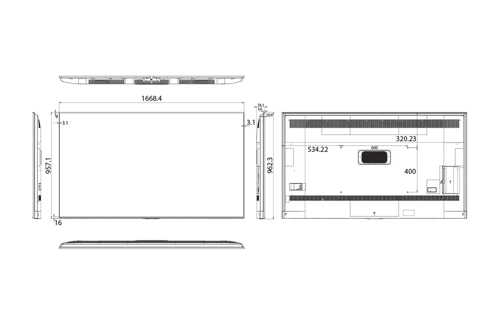 | Габариты | 1668.4 x 962.3 x 76.1 мм (Ш × В × Г) |