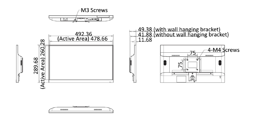 | Габариты продукта (В × Г × Ш) | 516,75 (Ш) × 320,03 (В) × 46,55 (Г) мм (без задней панели для настенного монтажа) 516,75 (Ш) × 320,03 (В) × 53,55 (Г) мм (с задней панелью для настенного монтажа) |