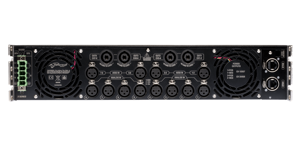 Powersoft X8 предоставляет восемь полностью обрабатываемых каналов и возможность выбора входов как от аналоговых источников, так и по цифровым AES3, а также по двум резервным потокам Dante*. Смешивание и маршрутизация каналов легко выполняются благодаря встроенному революционному DSP с низкой задержкой, обеспечивающему максимальную свободу настройки звучания и управления акустическими системами.