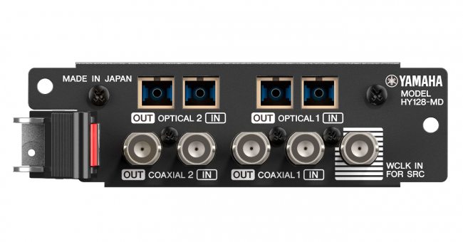 Плата аудиоинтерфейса HY128-MD обеспечивает подключение MADI, обрабатывает до 128 входных и 128 выходных каналов цифрового аудио с параметрами 48 кГц/24 бит. Встроенная функция преобразования частоты дискретизации позволяет устанавливать соединение между устройствами, работающими с разными частотами дискретизации.