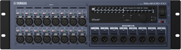 Блок высокоэффективных модулей ввода/вывода аудиосигнала имеет 16 и 8 аналоговых выходов, и предназначен для работы с консолями Yamaha серий CL, QL и RIVAGE PM10. Rio1608-D2 подключается через цифровой протокол Dante, обеспечивая высокую гибкость при настройке системы. Имеет два встроенных источника питания для повышенной надежности, буквенно-цифровой дисплей для визуального отображения состояния блока.