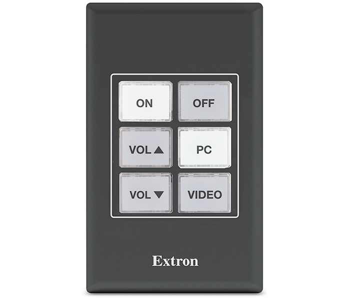 - Полностью настраиваемая кнопочная панель легко интегрируется в систему управления Extron серии Pro