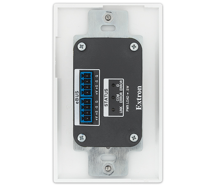Кнопочная панель EBP 50 серии eBUS® от Extron – это полностью настраиваемый интерфейс управления AV-системой, разработанный для использования в системах управления Extron с поддержкой eBUS. Удобная в использовании панель управления подключается к процессору управления IPCP Pro для активации различных функций AV-системы, среди которых включение и выключение дисплея, коммутация входов, регулировка громкости и многое другое. EBP 50 имеет шесть двухцветных кнопок с подсветкой для удобства работы в помещениях с приглушённым светом. Кнопочные панели eBUS подключаются к процессору управления и друг к другу с помощью одного кабеля, по которому передаются и питание, и данные. EBP 50 устанавливается в одноганговый распределительный короб и поставляется в комплекте с чёрными и белыми лицевыми панелями.