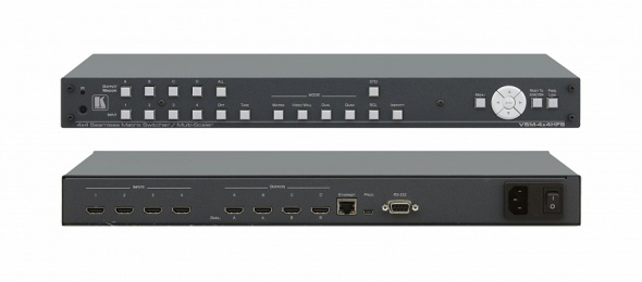 Матричный коммутатор 4x4 HDMI бесподрывный с масштабируемыми выходами, 19" Rack