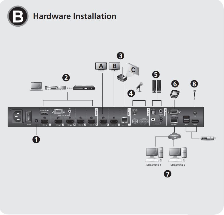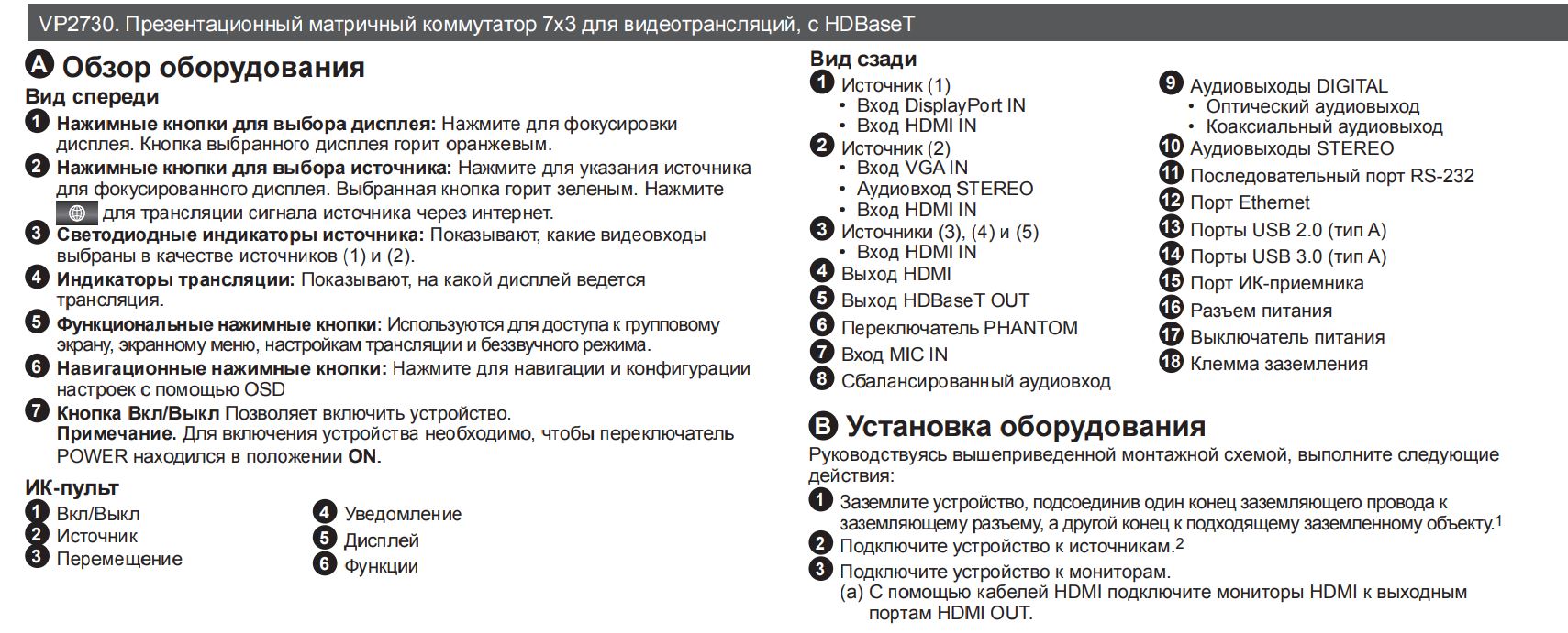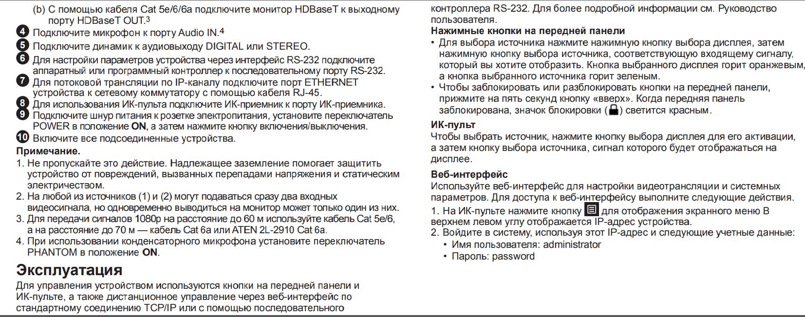 - Несколько способов управления - гибкое управление с помощью встроенного веб-интерфейса, кнопок на передней панели, экранного меню (OSD), ИК-пульта дистанционного управления и RS-232-подключения;