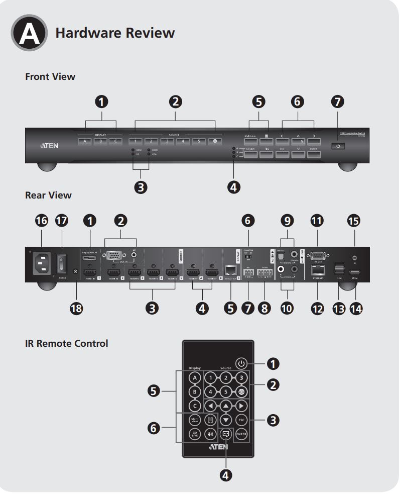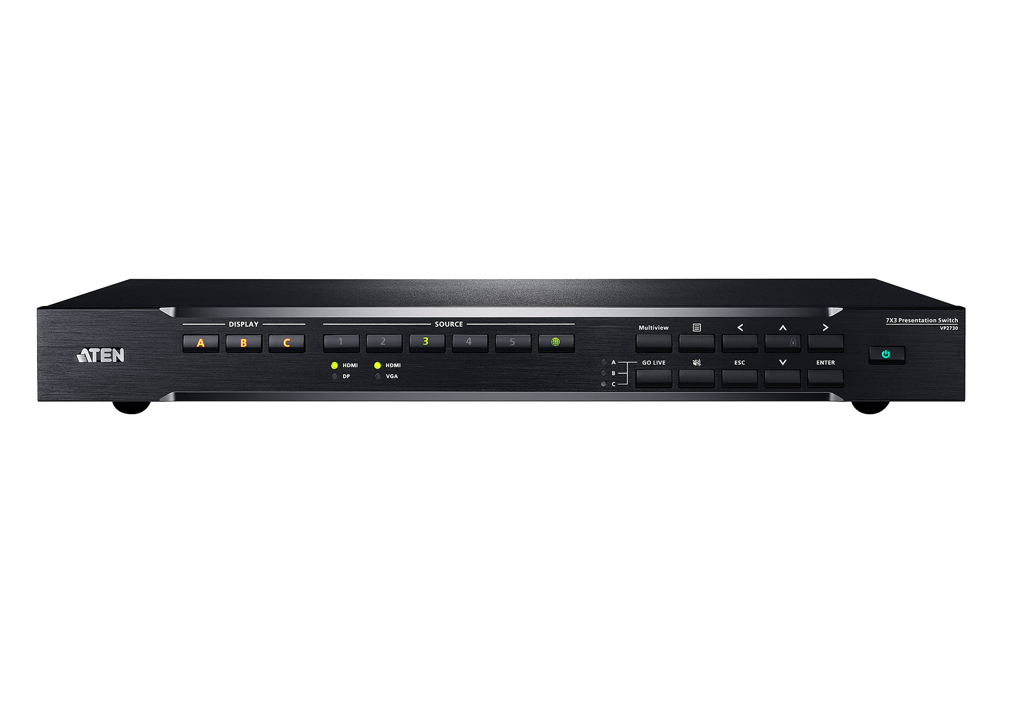 Коммутатор для проведения презентаций VP2730 компании ATEN сочетает в себе множество функций матричного видео-переключателя с масштабатором, потоковой передачей, аудиомикшером, а также HDBaseT-удлинителя и аналого-цифрового преобразователя, которые объединены в одно компактное устройство.