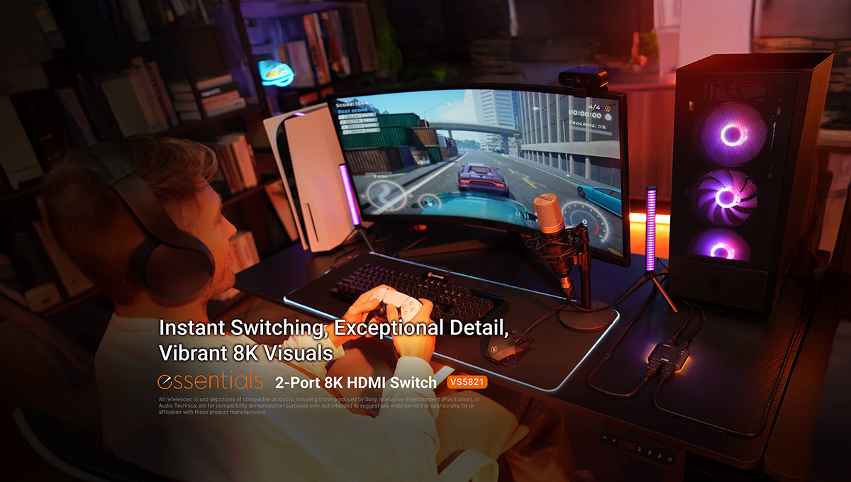 2-портовый HDM-переключатель VS5812 разработан для передачи изображения нового поколения в разрешении 8K Ultra HD, и тем самым позволяет повысить впечатления от просмотра, как при домашнем использовании, так и в профессиональных аудио-видеосистемах. Благодаря технологии RapidSync вы можете мгновенно переключать отображение на одном дисплее между двумя источниками. Простое нажатие кнопки погружает в визуальное великолепие сверхчёткости, ярких цветов и кинематографического звука – без лишних хлопот, без дополнительных затрат, только чистое удовольствие.
