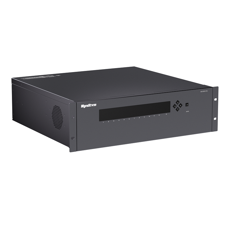 Устройство представляет собой модульный матричный коммутатор с 12 слотами, 8 входными и 4 выходными HDMI-разъёмами. Все входы и выходы поддерживают разрешение до 4K@60Hz 4:4:4 8bit и совместимы с HDCP 2.2. Матрица оснащена управлением EDID для компенсации конфликтов между разрешениями экранов и вывода самого высокого разрешения, совместимого со всеми подключёнными дисплеями.