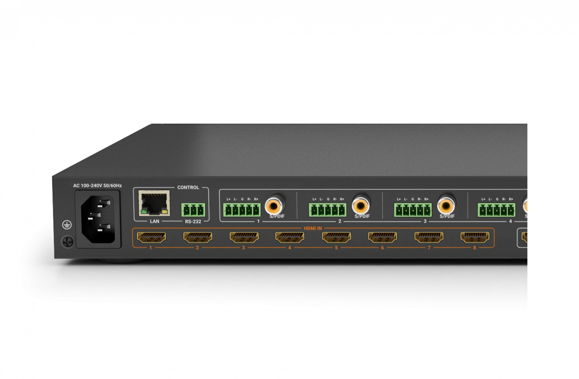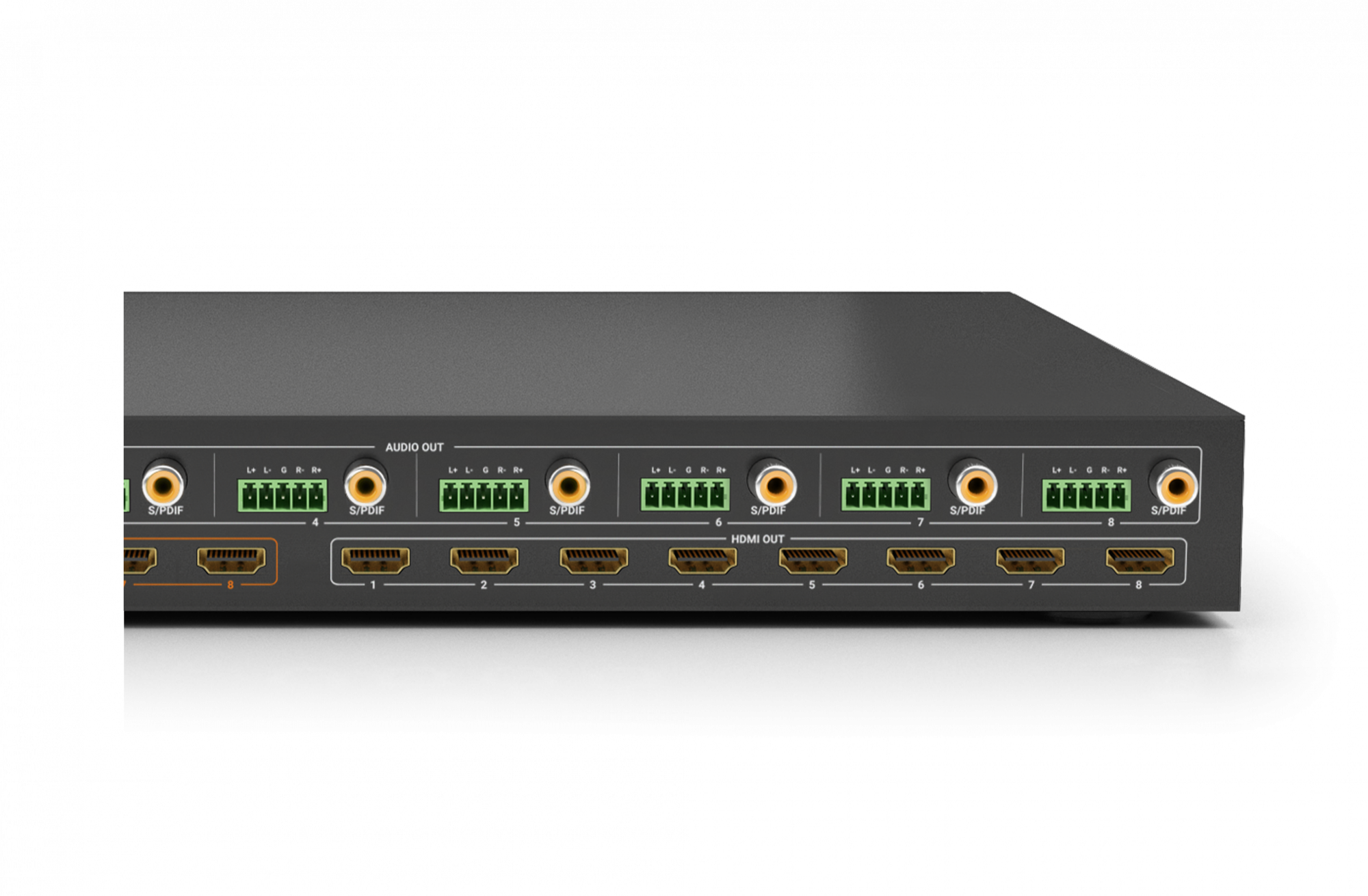 | Выходы | 8x HDMI Out 19-pin HDMI type A 8x 5-pin Phoenix Balanced Analog Audio 8x Toslink Digital Audio |