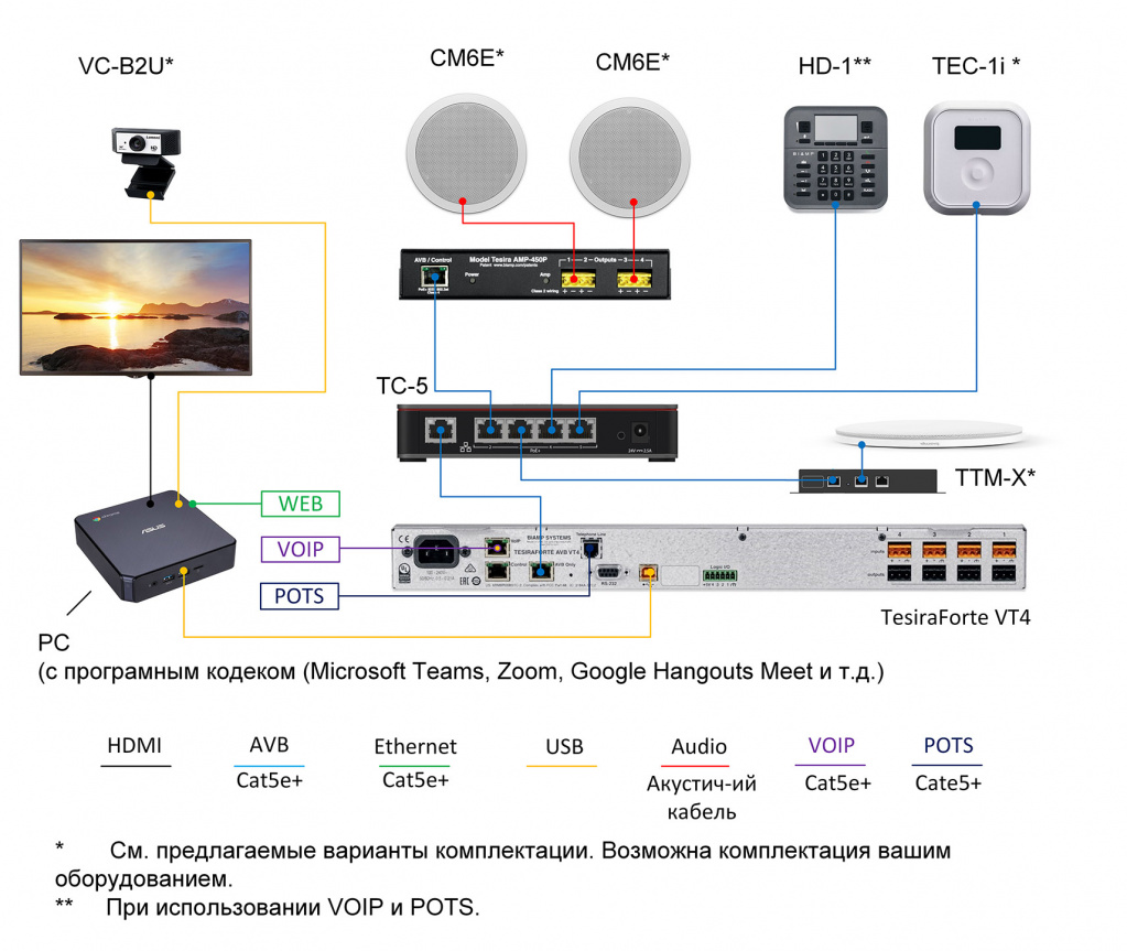 - - Комплект не включает персональный компьютер с установленным кодеком.