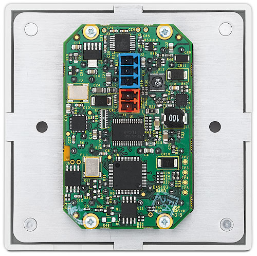 - Фронтальный монтаж с лёгким доступом — приёмопередатчик ИК, переключатели, кнопка сброса настроек и конфигурационный порт mini USB специально расположены за лёгкосъёмной настенной панелью на магнитных держателях.