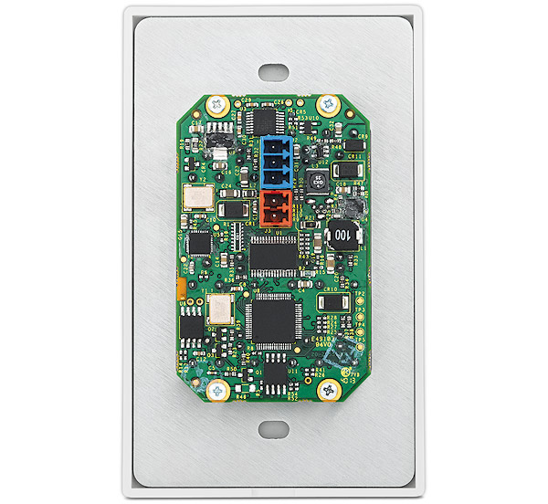 • Фронтальный монтаж с лёгким доступом — приёмопередатчик ИК, переключатели, кнопка сброса настроек и конфигурационный порт mini USB специально расположены за лёгкосъёмной настенной панелью на магнитных держателях.