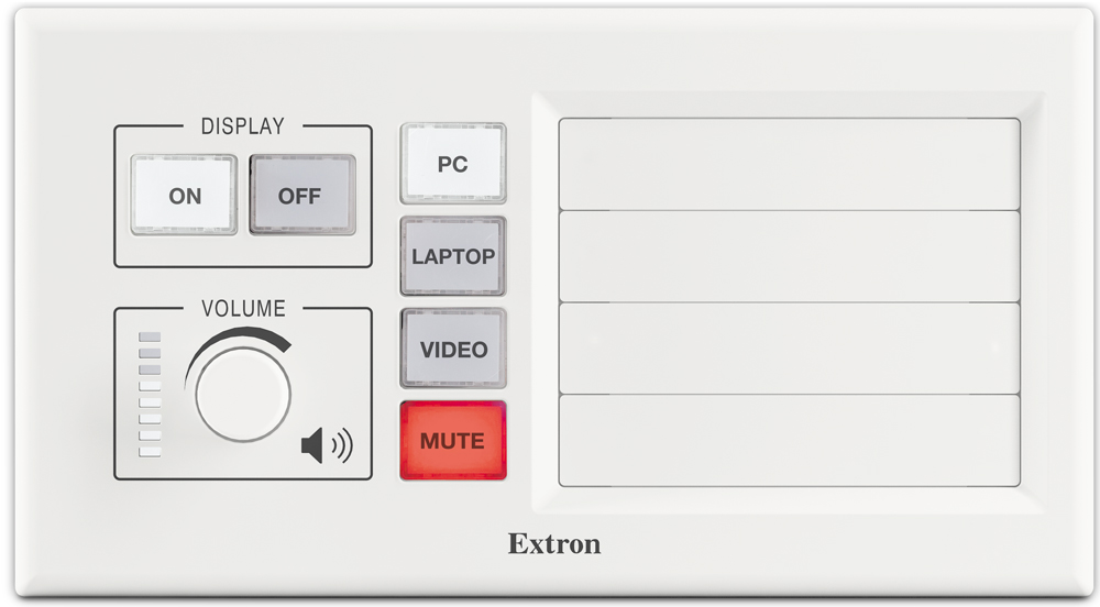 MLC Plus 100 AAP представляет собой простой в использовании контроллер с интерфейсом Ethernet, разработанный для управления общими функциями аудио и видео, такими как включение/выключение дисплея, коммутация входов, регулировка громкости, а также управление AV‑устройствами по Ethernet. Лицевая панель скрывает крепёжные винты, и вместе со скошенными краями и закруглёнными углами придаёт контроллеру утончённый, стильный вид. Наряду с шестью индивидуально настраиваемыми кнопками, MLC Plus 100 AAP имеет порт дистанционного управления громкостью для усилителей Extron серии MPA и некоторых моделей XTRA™. Функция «Power over Ethernet», PoE, позволяет MLC Plus 100 AAP получать питание и данные по одному кабелю Ethernet. MLC Plus 100 AAP устанавливается в четырёхганговый распределительный короб, включая в комплект чёрные и белые лицевые панели, и имеет отверстие для четырёх одноместных архитектурных адаптерных панелей.