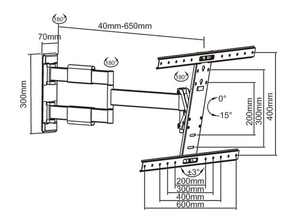 - M6184 (7350022736184) - Настенное крепление для ЖК-панели 37-55", VESA 600x400, -15°, до 30кг, одно плечо, черный
