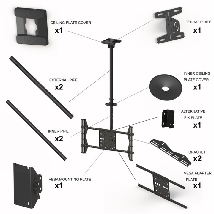 Крепление идеально подходит для любого потолочного экрана большого размера - будь то просмотр телевизора или цифровая реклама на профессиональной панели.